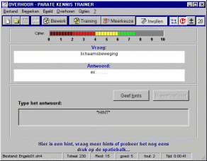 De Invullen functie is het meest geschikt om te testen of je het helemaal kent. Er is een speciale knop om tijdens invullen een hint op te vragen: